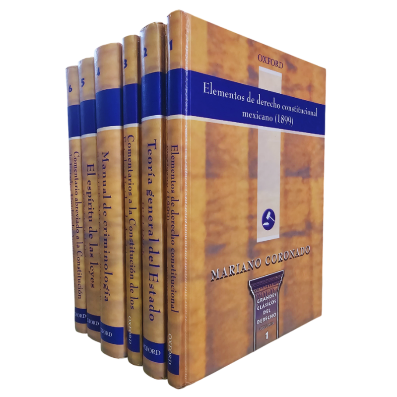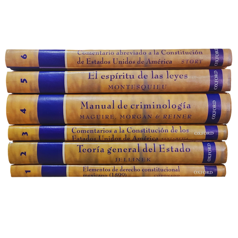 En esta colección se presenta una diversidad de obras clásicas y contemporáneas. En el primer caso tenemos El espíritu de las leyes y en el segundo, el manual de criminología, obra en la que se presentan textos de criminólogos prestigiados del Reino Unido quienes hacen propuestas acerca de los conceptos de delincuente, delito y, por tanto, de la criminalidad. También se incluye la obra del juez Story y la de Kent y Mexía que comentan la Constitución de Estados Unidos de América, al igual que la de Coronado, considerada como una expresión auténtica del Derecho Constitucional de fines del siglo XIX en México.