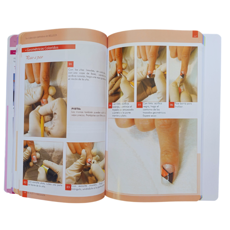 En este volumen encontraras principios y técnicas utilizados en cortes, peinados, tratamientos capilares y alaciados progresivos, tips exclusivos de maquillaje, decoración de uñas para todos los gustos y momentos, técnicas de preparación de las uñas Acrygel, uña de Gel y Star News, spa completos de pies y manos. Además el paso a paso detallado de cada posición en los procedimientos de estética corporal y facial, con orientaciones básicas, desde como preparar al cliente y mucho mas.