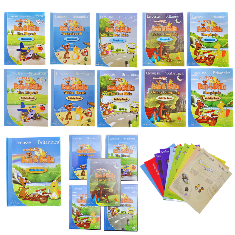 Con la compañía de dos simpáticos y amigables personajes, el oso Ben y la hipopótamo Bella, los pequeños contarán con gran variedad de materiales para aprender mientras se divierten: canciones, bailes, cuentos, actividades, lectura; una enorme cantidad de recursos en un método de aprendizaje único, actual y efectivo.