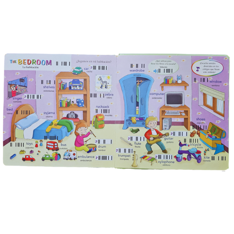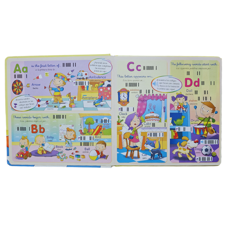 Un atractivo y novedoso método para que los niños y niñas disfruten aprendiendo inglés. Cada página esconde múltiples sorpresas sonoras: palabras, canciones y más de 120 efectos para aprender inglés poniendo el lector electrónico bien centrado sobre los códigos de barras. Además, los más pequeños descubrirán con su lector la respuesta a las preguntas planteadas en los juegos.