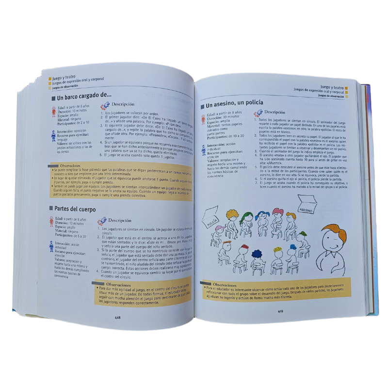 Esta obra contiene más de seiscientos juegos, relativos a cada uno de los periodos del ciclo anual escolar, y constituye para el educador una herramienta de consulta permanente. Cada juego incluye una ficha que detalla el número de participantes recomendados, la edad, el material necesario, el espacio más adecuado, etc.