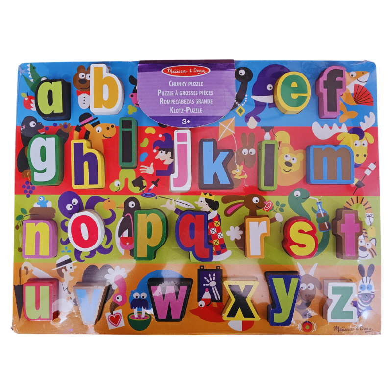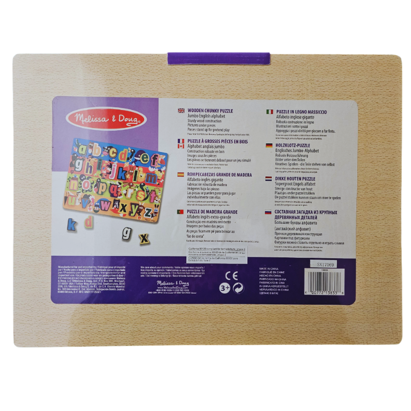 La diversión del alfabeto comienza con este rompecabezas de madera extragrueso que incluye 26 piezas gruesas de fácil agarre ( a z ). Cada pieza se muestra con una imagen colorida que comienza con esa letra, y debajo de cada pieza se muestra una letra a juego a todo color. Las piezas de letras se levantan. Fomenta la mano-ojo, la motricidad fina, el reconocimiento de letras y las habilidades previas a la lectura.